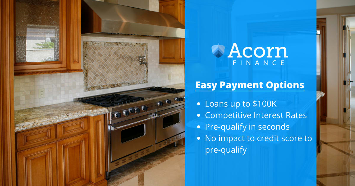 We offer financing for Home remodeling projects like Kitchen ad Bathroom Remodeling in Cookeville or Putnam County TN. Our financing is through Acorn Finance, They have competitive Interest Rates, get up to $100,000 for any home remodel or repairs you need to do. If you are in Cookeville TN and need to get your Kitchen Remodeled, Bathroom remodeling, a new patio or deck, we can help, call 615-357-7797 today and see how easy it is to get a remodeling job done right.